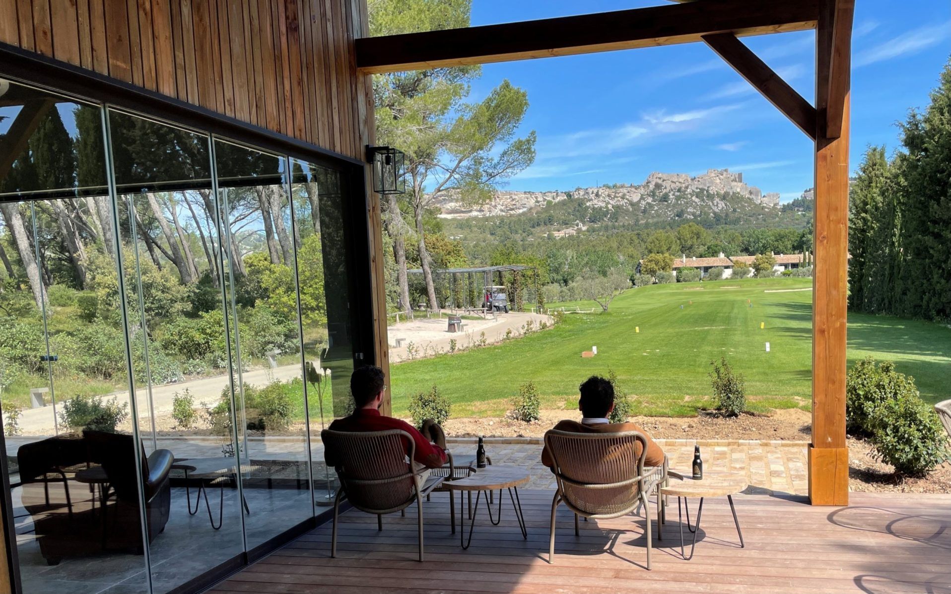 Un joyau harmonieusement niché au sein du parcours, offrant une terrasse qui surplombe le premier trou, révélant un panorama exceptionnel sur le château des Baux de Provence.